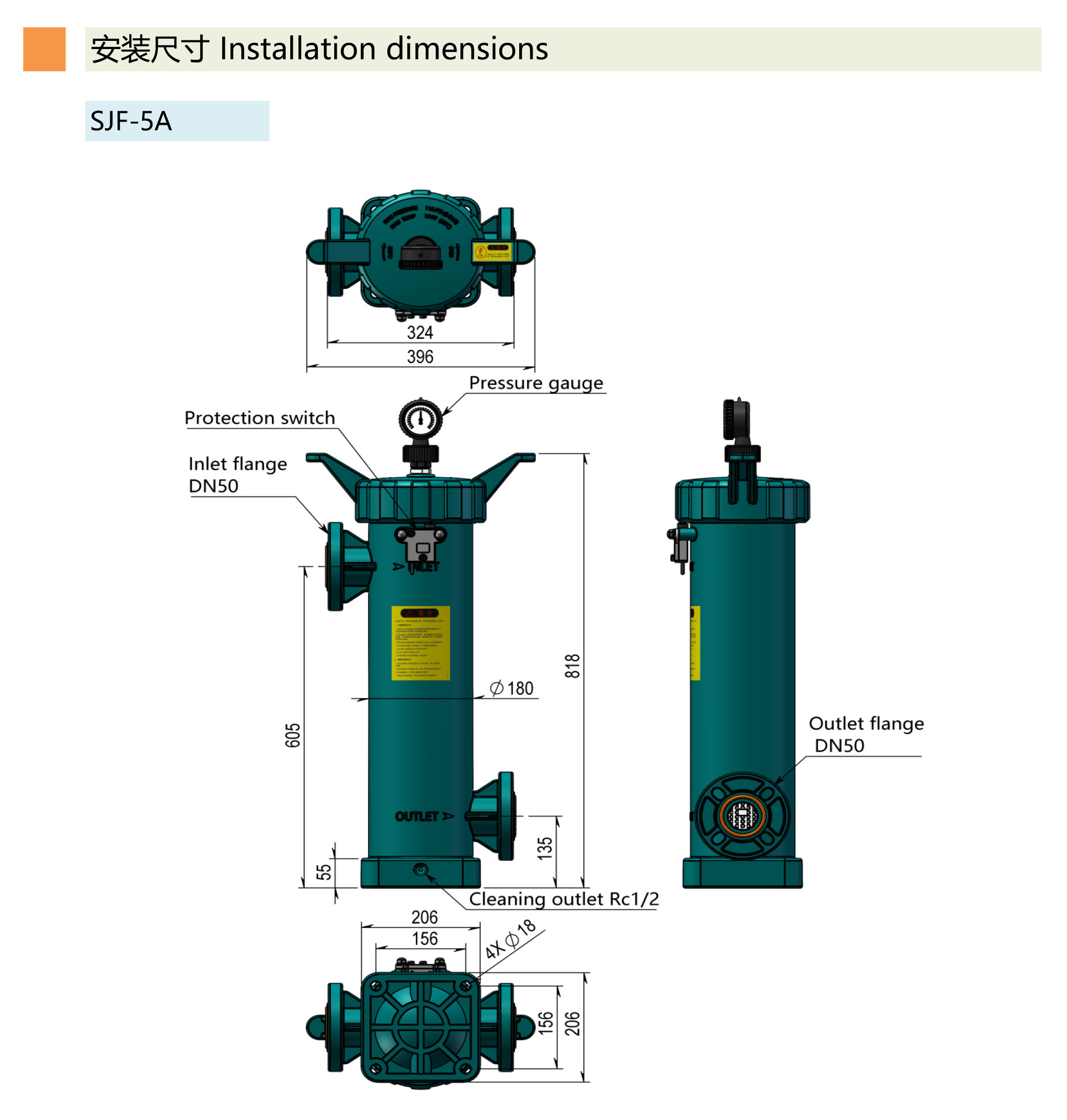 ●進出水口采用法蘭式連接,堅固耐用,可配各國標準管道法蘭使用。