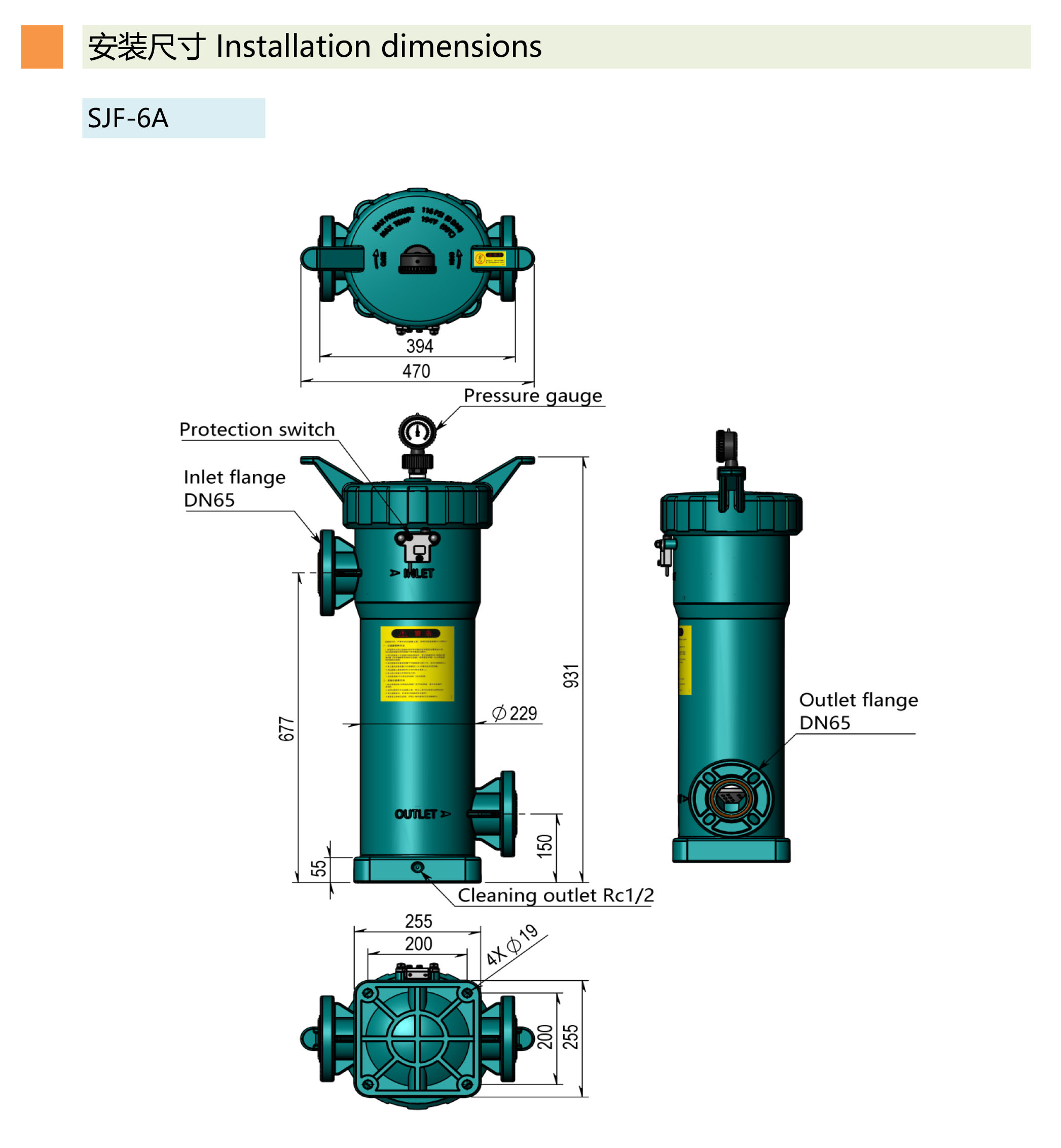 ●.此過(guò)濾器為濾袋式過(guò)濾器,配非標(biāo)6#過(guò)濾袋(φ180*560MM)。也可裝外徑62MM*20″的濾芯6支,外徑68MM*20″的濾芯5支.
